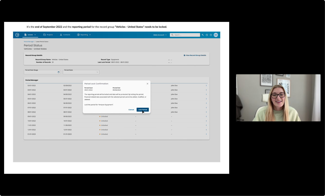 "My ideal approach to locking periods would be by accounting period—not by lease or lease ID. That way I know when a period is closed, nothing else can be changed — everything else should flow into the next period.”