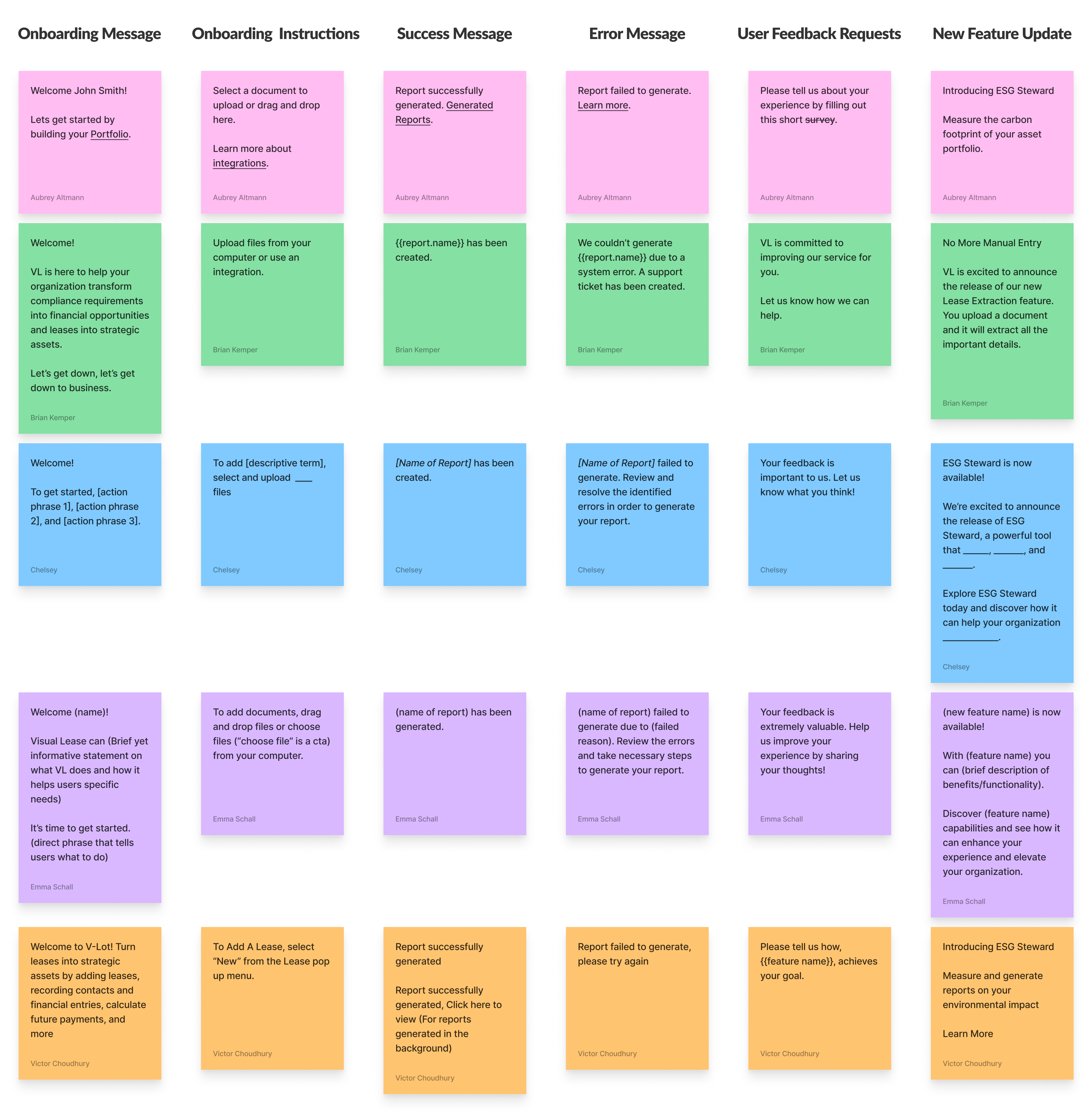 After defining the Visual Lease platform’s audience, our team explored desired tone, energy, and style through a common-interaction exercise to align on how we want to communicate with users.